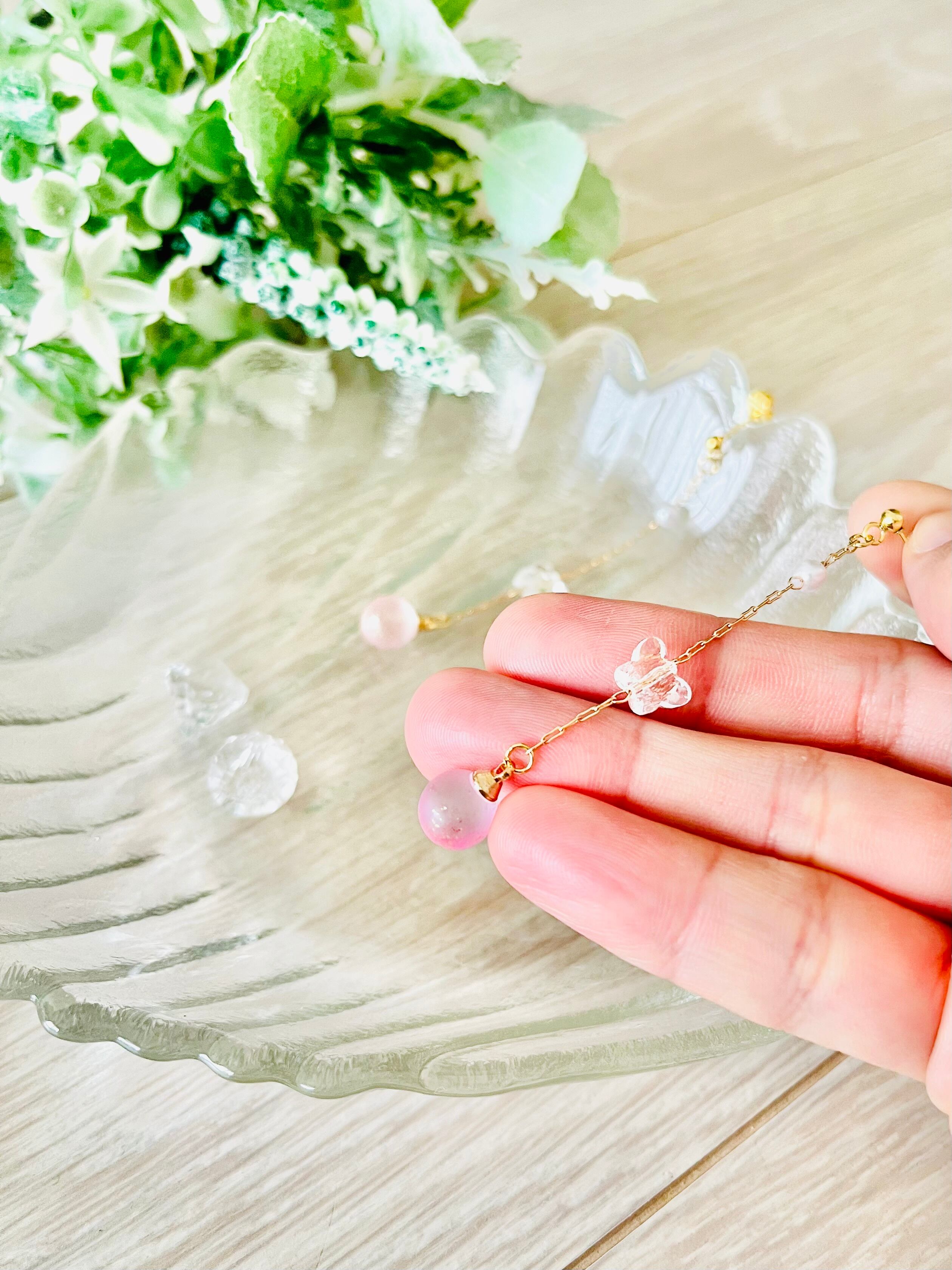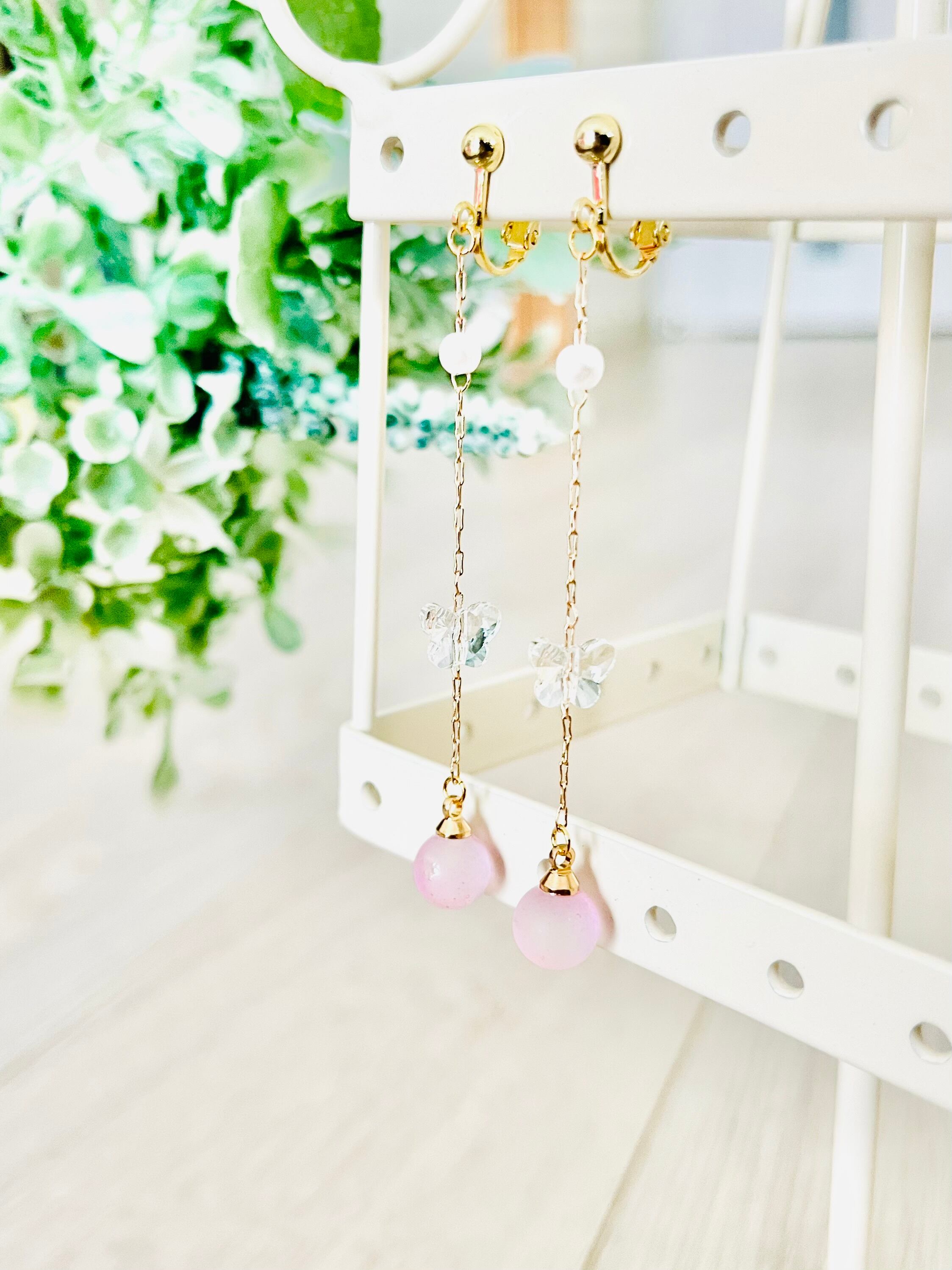 蝶々と桜色のボールチャームが可愛い春の耳飾りです✨